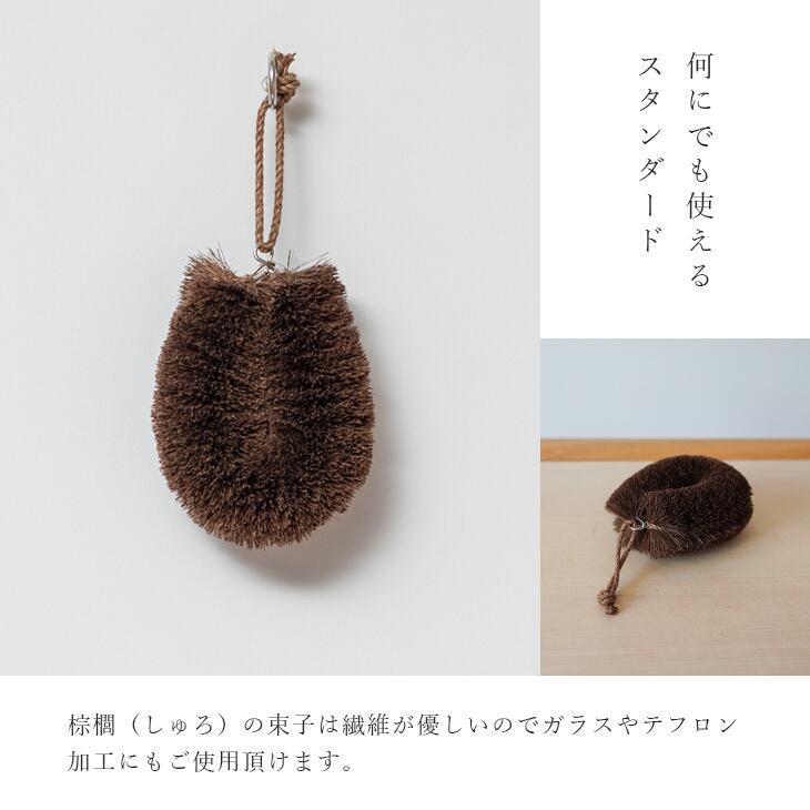 ■棕櫚(しゅろ)の束子は繊維が優しいのでガラスやテフロン加工にもご使用頂けます。