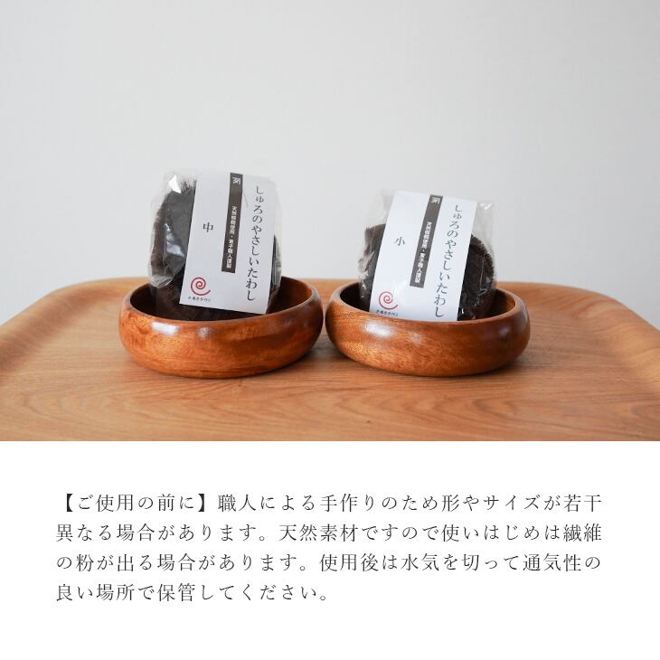 ■【ご使用の前に】職人による手作りのため形やサイズが若干異なる場合があります。天然素材ですので使いはじめは繊維の粉が出る場合があります。使用後は水気を切って通気性の良い場所で保管してください。
