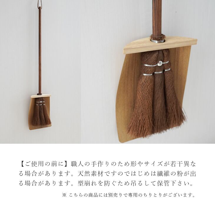 ■天然素材の棕櫚(しゅろ)で出来た日本製のほうき。毛先のあたりが優しいのでフローリングや畳にも最適です。