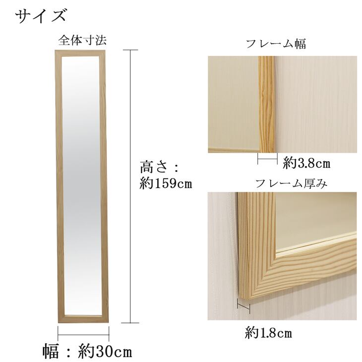杉 ウォールミラー 幅30cm 高さ159cm 日本製 直送品 インテリア鏡 姿見 生杉ミラー 壁掛けミラー 立て掛けミラー 天然木ナチュラル 17308