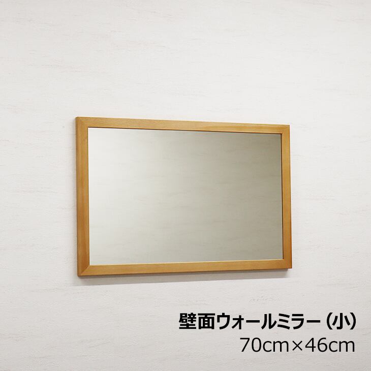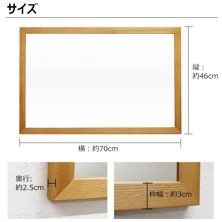 壁面ウォールミラー 小 天然木 ブラウンorナチュラル 幅:約70cm 高さ:約46cm 安心の国産メーカー直送 スッキリ 壁掛け フラット まっすぐ デザイン 28848 28849 日本製