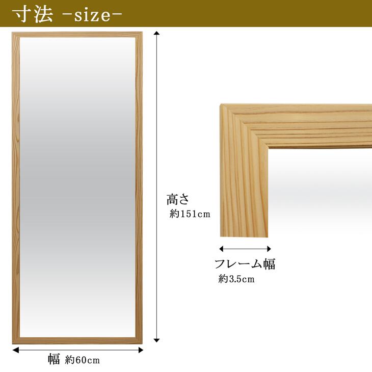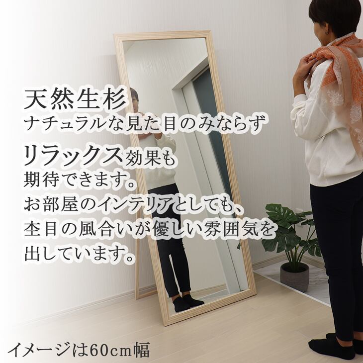 生杉 スタンドミラー 60cm×151cm 脱臭 消臭効果 抗菌効果 リラックス効果が期待できます 安心の国産メーカー直送品 立て掛け 鏡 姿見 全身鏡 スタンド ミラー 杉ミラー 天然木 日本製 19898