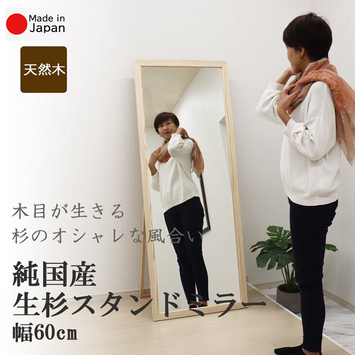 生杉スタンドミラー 幅60cm