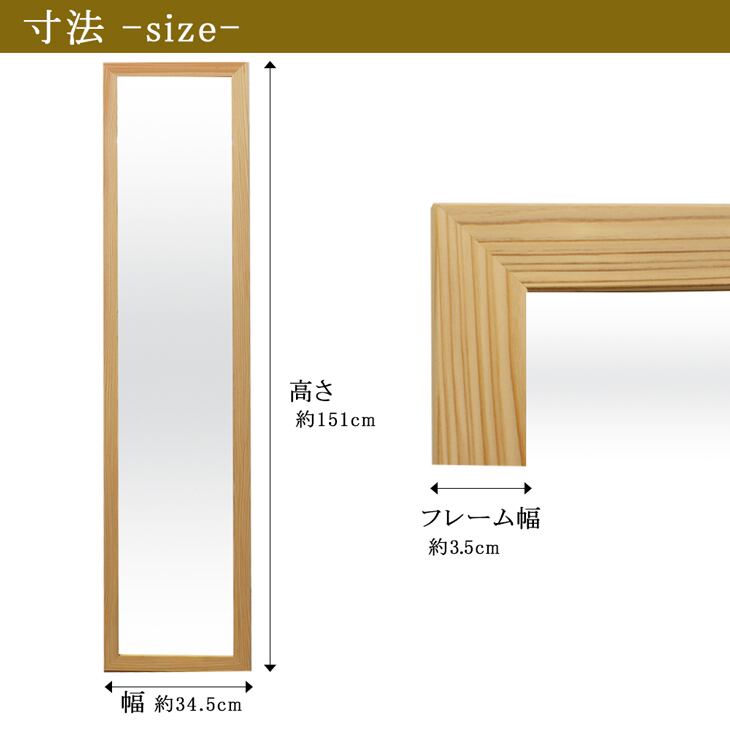 生杉 スタンドミラー 34.5cm×151cm 脱臭 消臭効果 抗菌効果 リラックス効果が期待できます 安心の国産メーカー直送品 立て掛けミラー 鏡 姿見 全身鏡 天然木杉ミラー 日本製11377