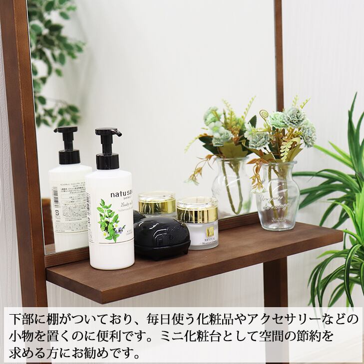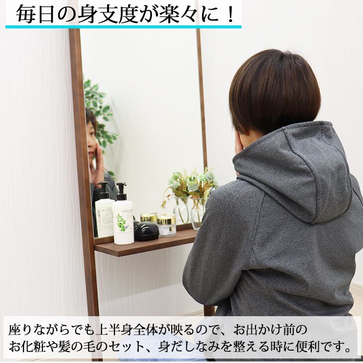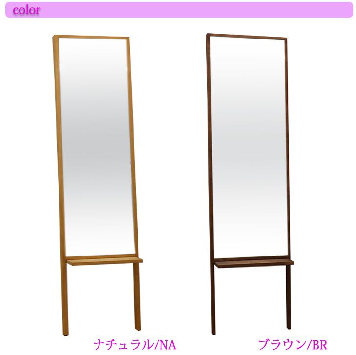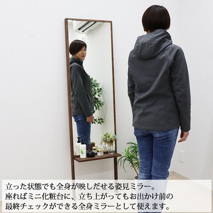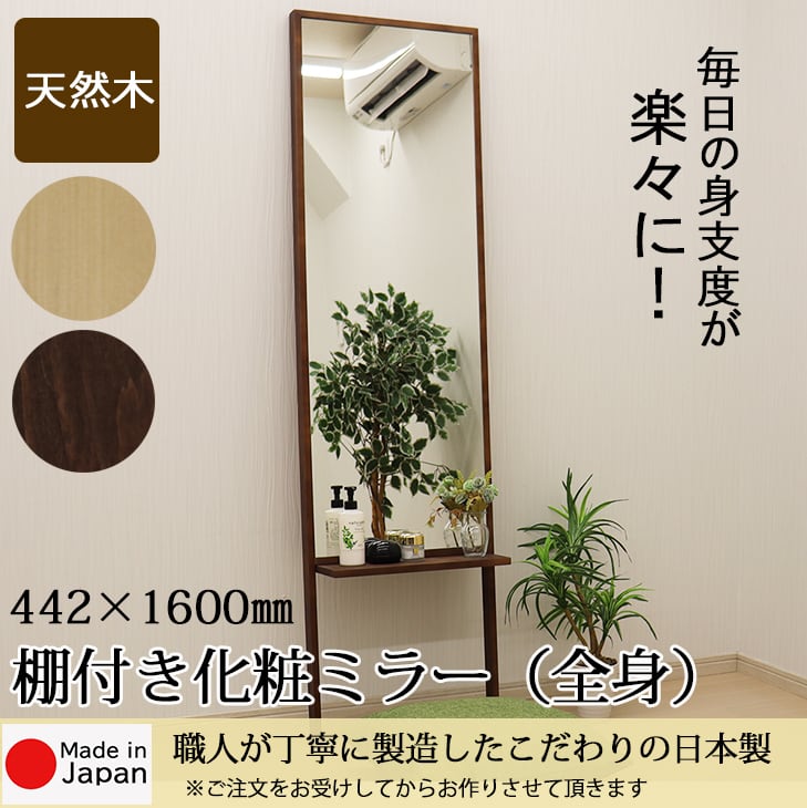棚付き化粧ミラー 442×1600mm メイク 鏡 化粧鏡 化粧ミラー 姿見 全身 身だしなみ おしゃれ 寝室 リビング シンプル 天然木 スペース 安心の国産メーカー 直送品 転倒防止 日本製 33857 33858